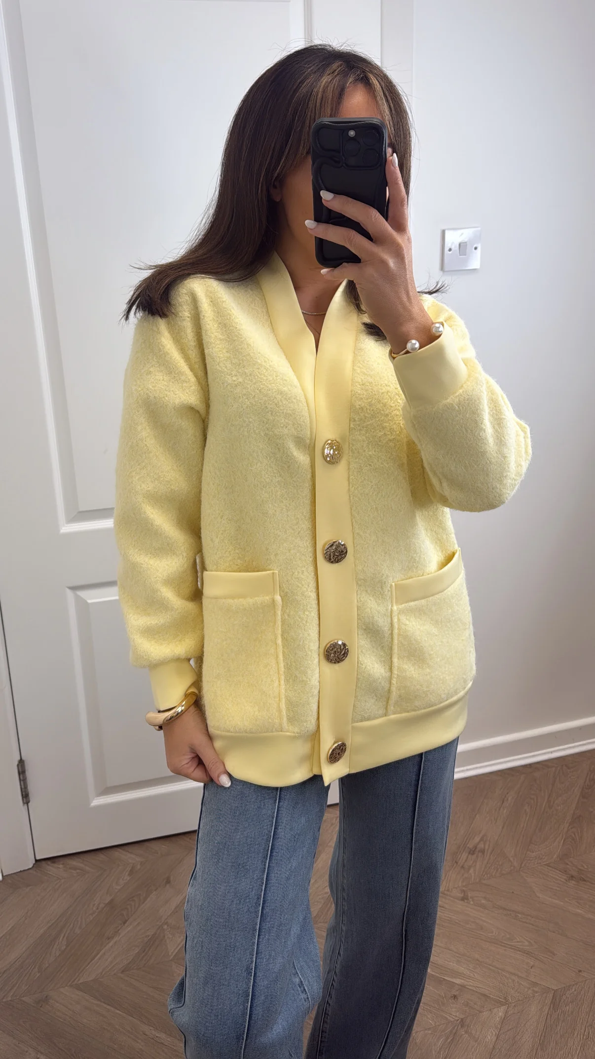 Wrap yourself in effortless elegance with this luxuriously soft lemon cardigan. Crafted from sumptuous fabric that feels like a gentle embrace, it features gleaming gold button details that elevate your everyday style. Whether layered over a slip dress or worn solo, this piece embodies off-duty chic—the kind of relaxed sophistication that makes getting dressed feel like second nature. A wardrobe essential for those who refuse to compromise on comfort or style.