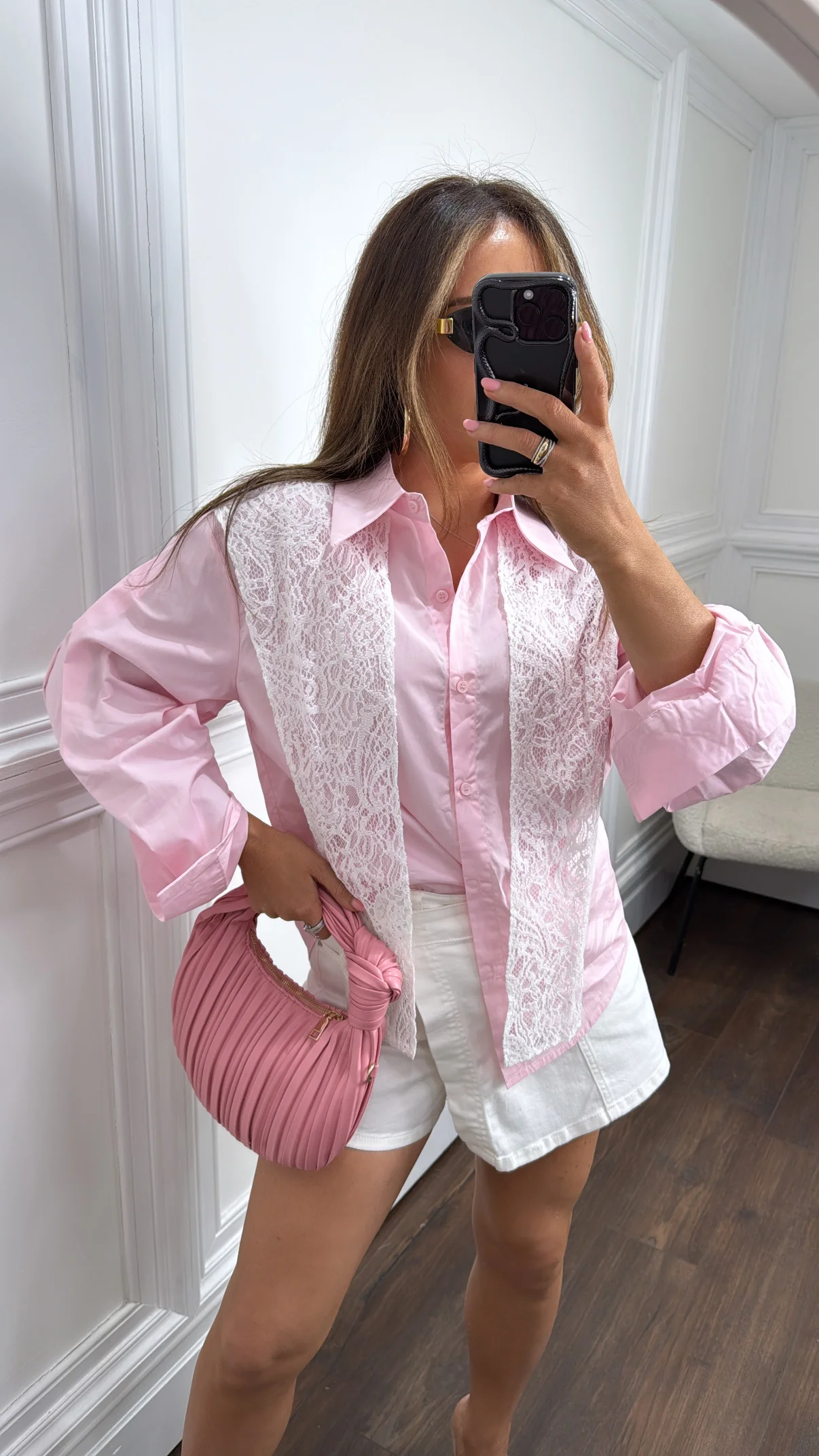 JADE pink shirt with lace overlay