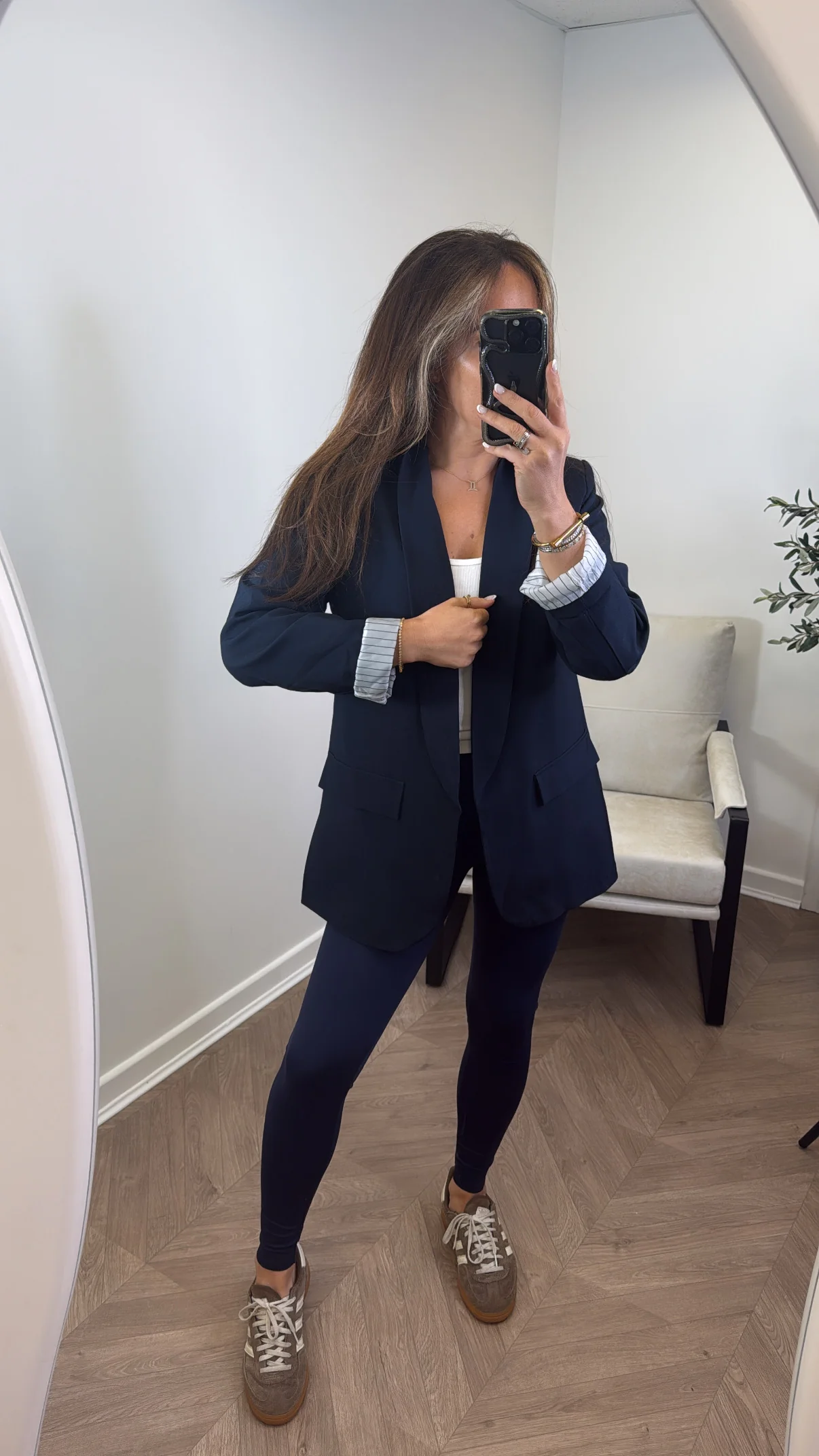 Elevate your wardrobe with the JENNIFER navy blazer, designed for a smart and stylish statement. Featuring a sleek silhouette and contrasting pinstripe cuffs, this blazer brings a refined edge to both professional and casual looks. Perfect for those who appreciate subtle details that stand out.
