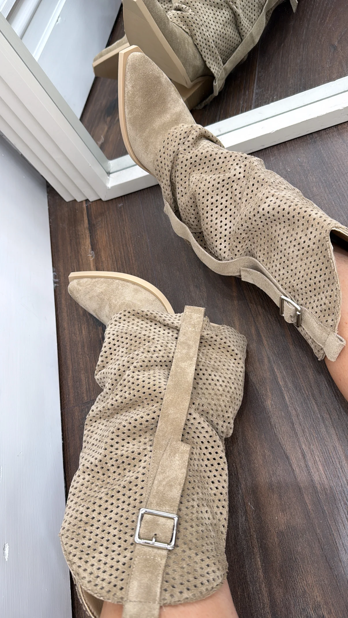 Step into the season in style with our TAYLOR beige fold down laser cut cowboy boots. These boots are the perfect combination of fashion and functionality, featuring a unique fold down style and intricate laser cut design. Make a statement with the boot of the season.