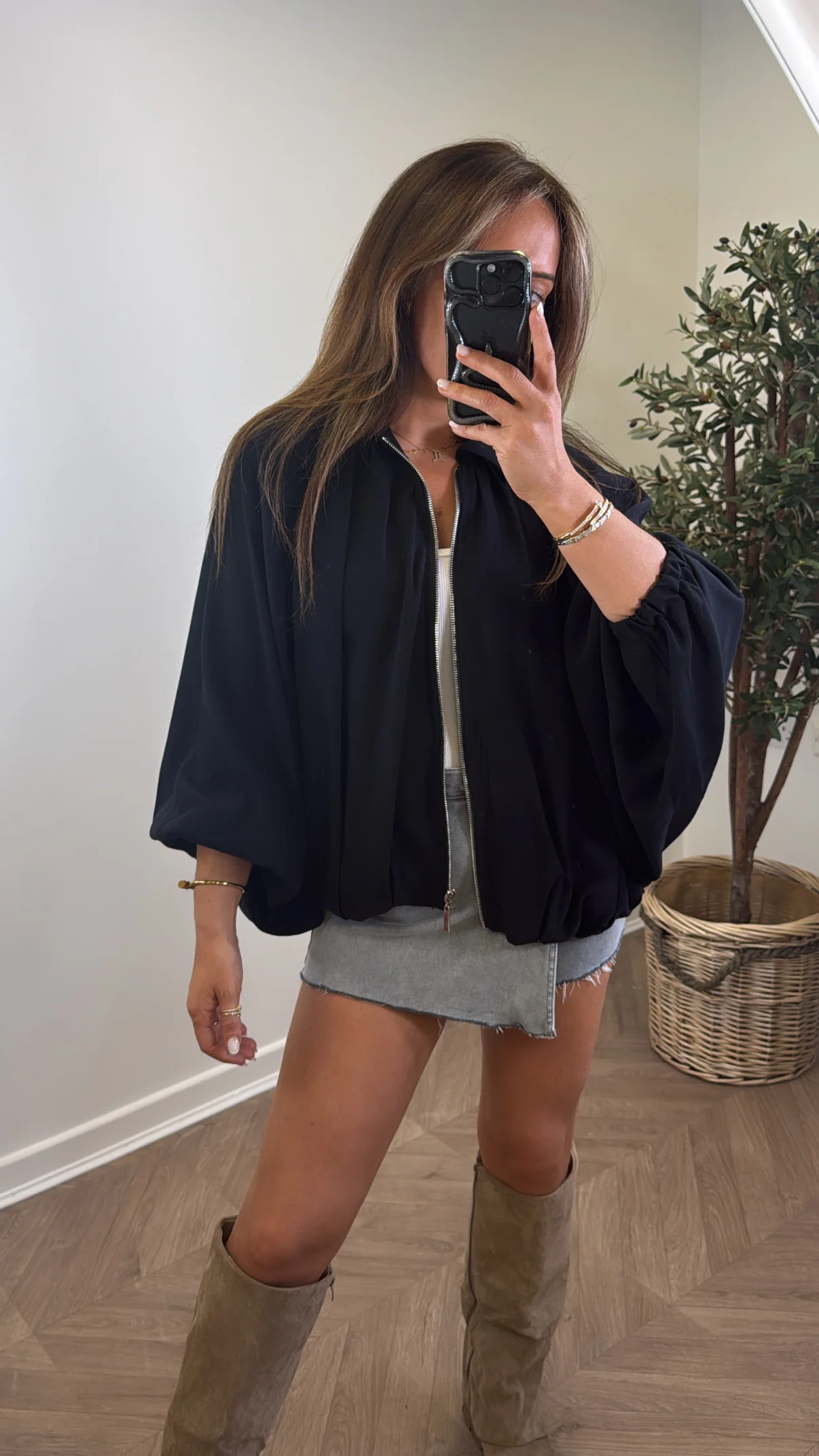 WILLA black batwing zip up jacket